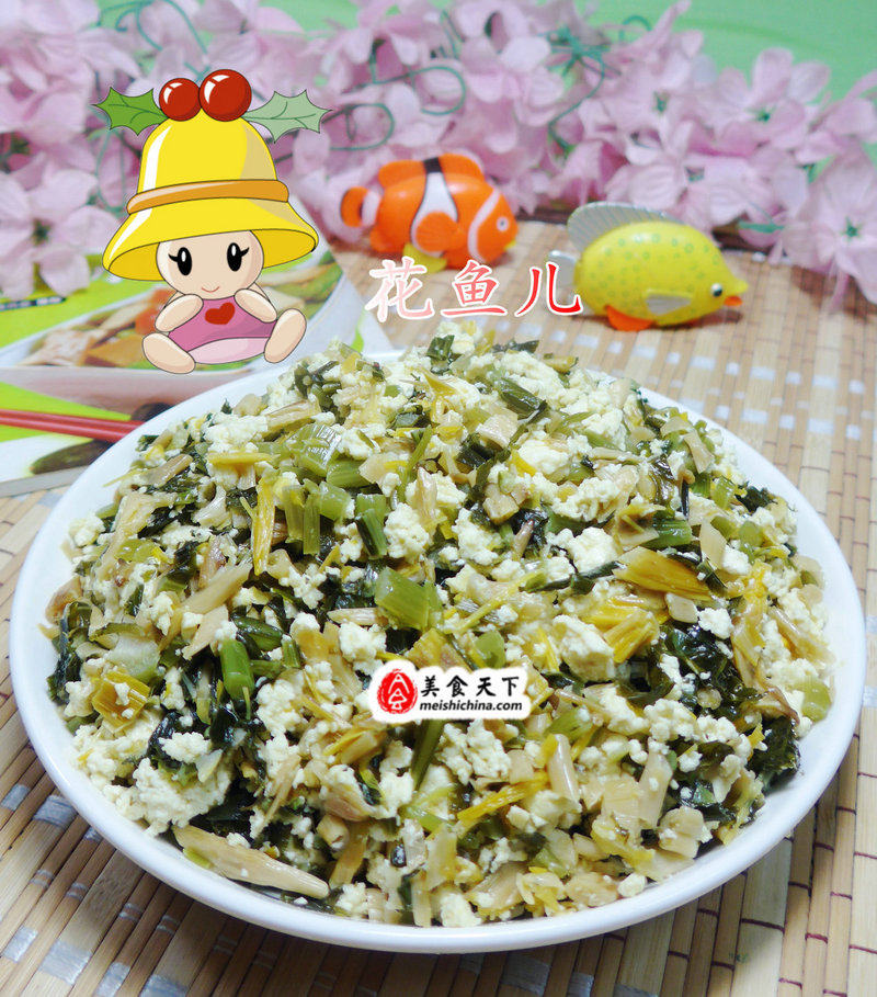 5:接着,合入抓碎的老豆腐翻炒翻炒。