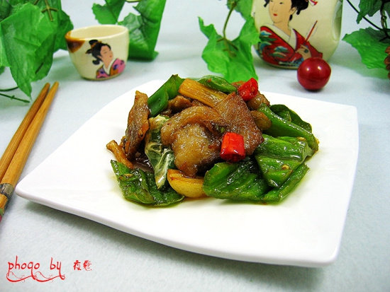 6:最后放蒜苗和鸡精,再放点老抽调色