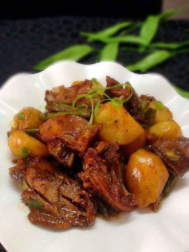 8:等鸡块酥烂后放入土豆、豆角