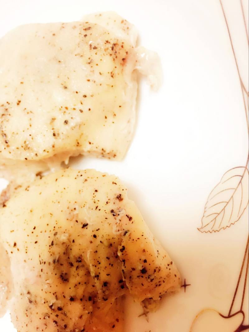 1:鸡胸肉用盐黑胡椒腌制20分钟。