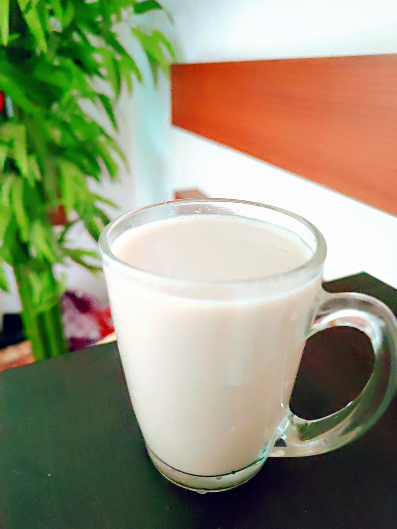 4:美味健康杏仁露就可以享用了,(剩下的杏仁渣可以和燕麦一起煮成燕麦片,如果没有加牛奶而是加清水做的杏仁露还可以做成杏仁粉,烘焙也经常会用到)