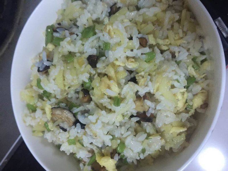 剩饭适量;鸡蛋适量;香菇适量;空心菜适量;土豆适量;