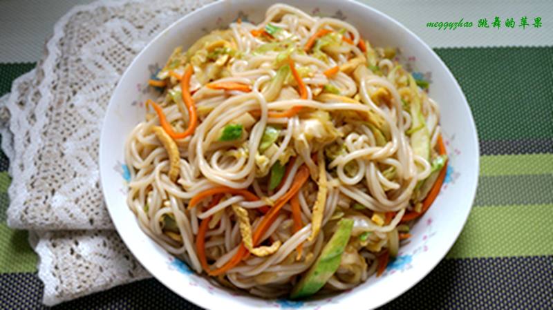 干米粉500克;卷心菜半棵;黄瓜一根;胡萝卜一根;