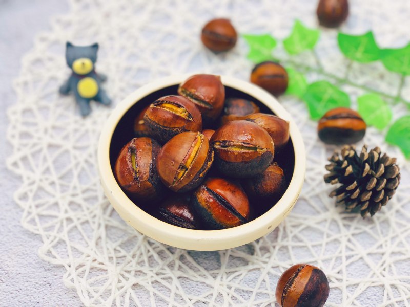 7:刷好糖水的大栗摆回蒸烤箱里继续200度烤5分钟左右,烤到大栗表面糖水没了就可以了!