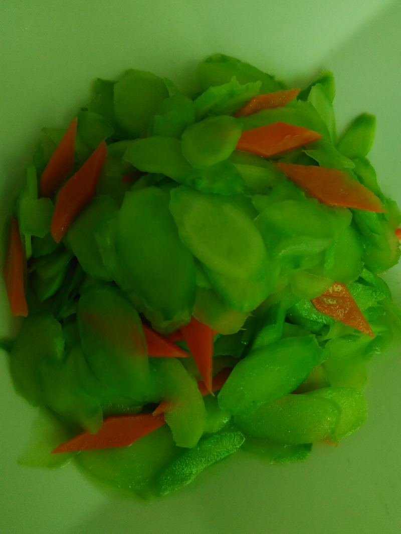 2:切片后用盐腌2分钟,冲洗一下备用。