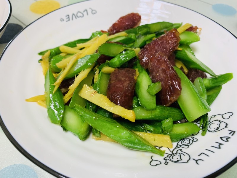 7:口感脆爽,加上姜的辛香、腊肠的咸鲜,别有风味。精致的一小盘,没有剩菜的烦恼。养生饱腹两不误。