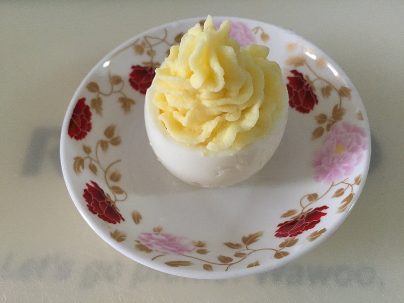 5:鸡蛋剥皮改刀,将蛋黄抠出同放入研磨碗(切下的蛋清我偷吃了,哈哈)