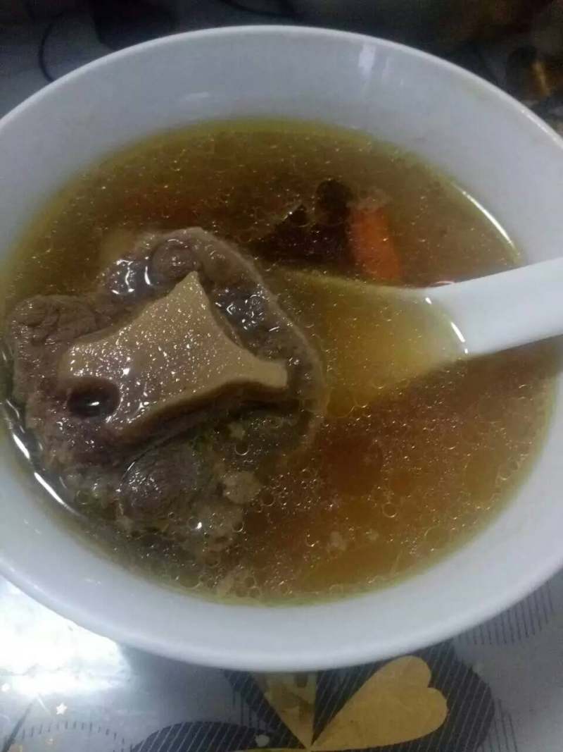 我这根牛尾2斤左右,药材总共30g,只有一股淡淡的药香,因为家人都不喜药味过重,如果喜欢药膳味重的,可以根据牛肉的量酌情增加。如果觉得没有咸味,可以在喝汤的时候加少许盐在个人的碗里。