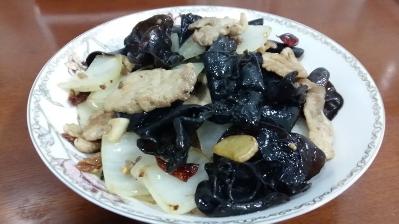纯瘦猪肉250g;洋葱半个;木耳适量;