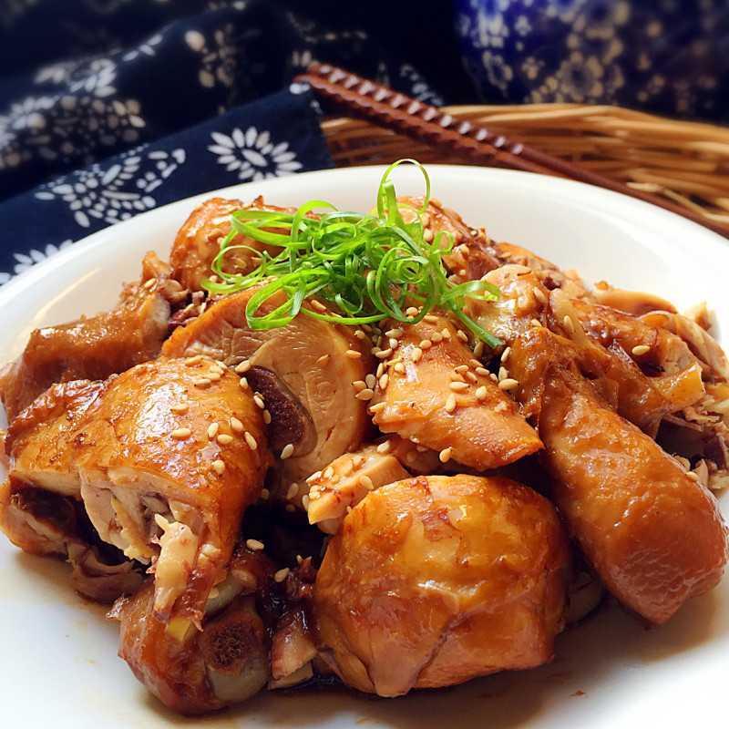 鸡腿4个;葱2棵;八角2块;桂皮2块;生姜3块;生抽2茶匙;老抽2茶匙;豉油3茶匙;料酒1茶匙;芝麻香油2茶匙;冰糖10克;