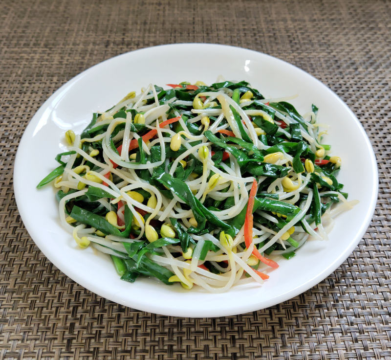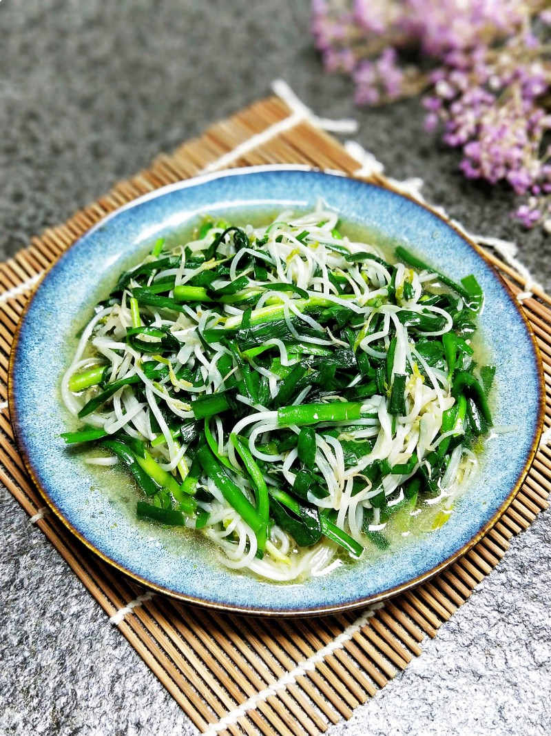 5:成品。春天的韭菜特别香嫩,配上豆芽清脆爽口。