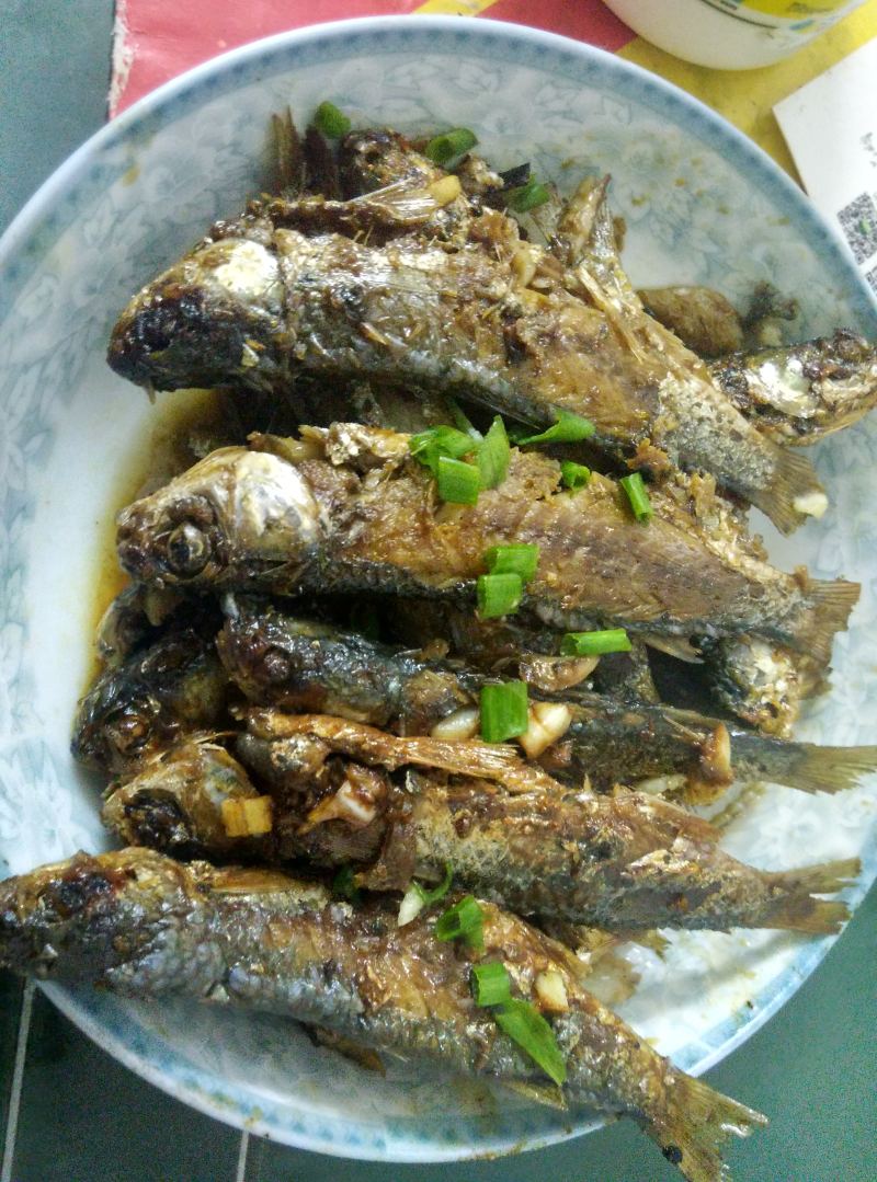 9:再把煎好的鱼倒进去,再加酱油盐和小半碗开水煮一会入味