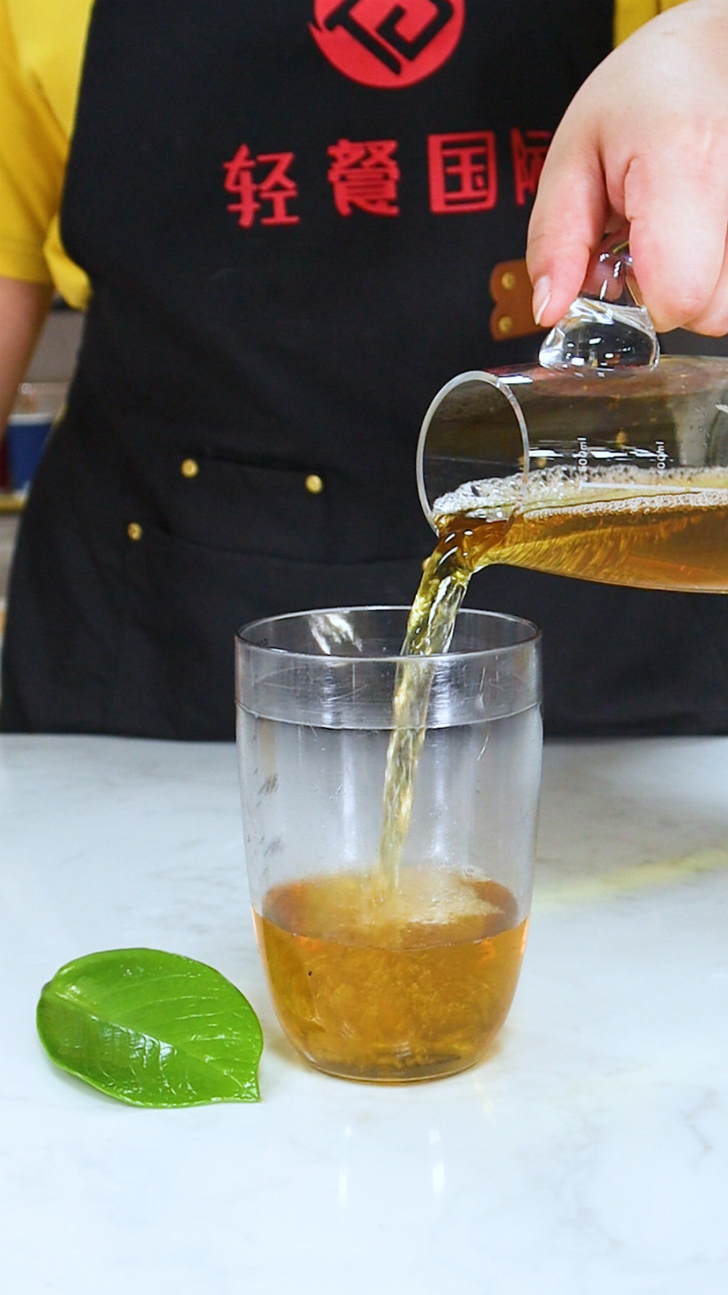 9:最后将茶汤倒入奶茶桶,或封口放入冰箱备用,五窨茉莉绿茶完成了!(最佳保存时间为4到6小时)。