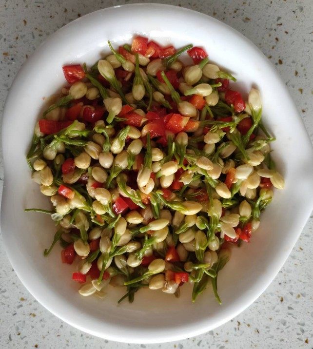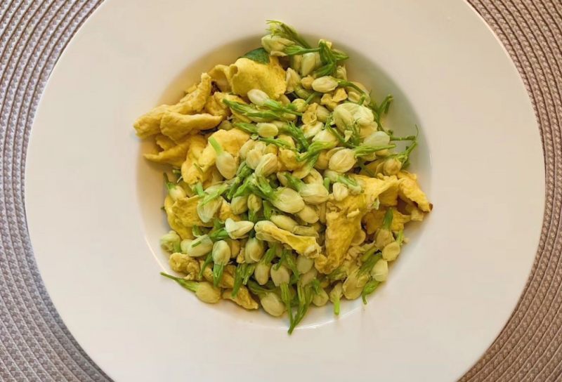 炒之前先将茉莉花放入开水中焯烫一下,这样能够去除茉莉花的苦涩味道。