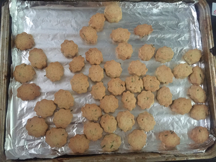 4:从冰箱拿出,将面团擀成0.5cm厚度的面饼,用模具刻出放入烤盘。150度15分钟,165度5分钟(颜色好看,收紧)!出炉