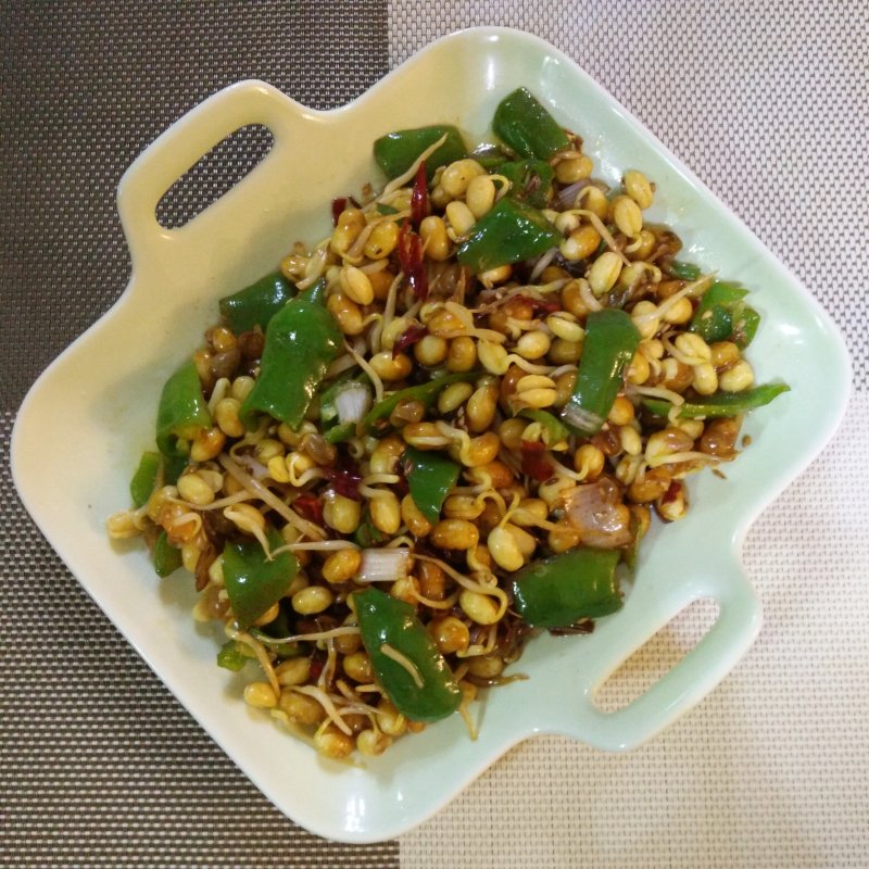 黄豆芽半斤;绿青椒2个;
