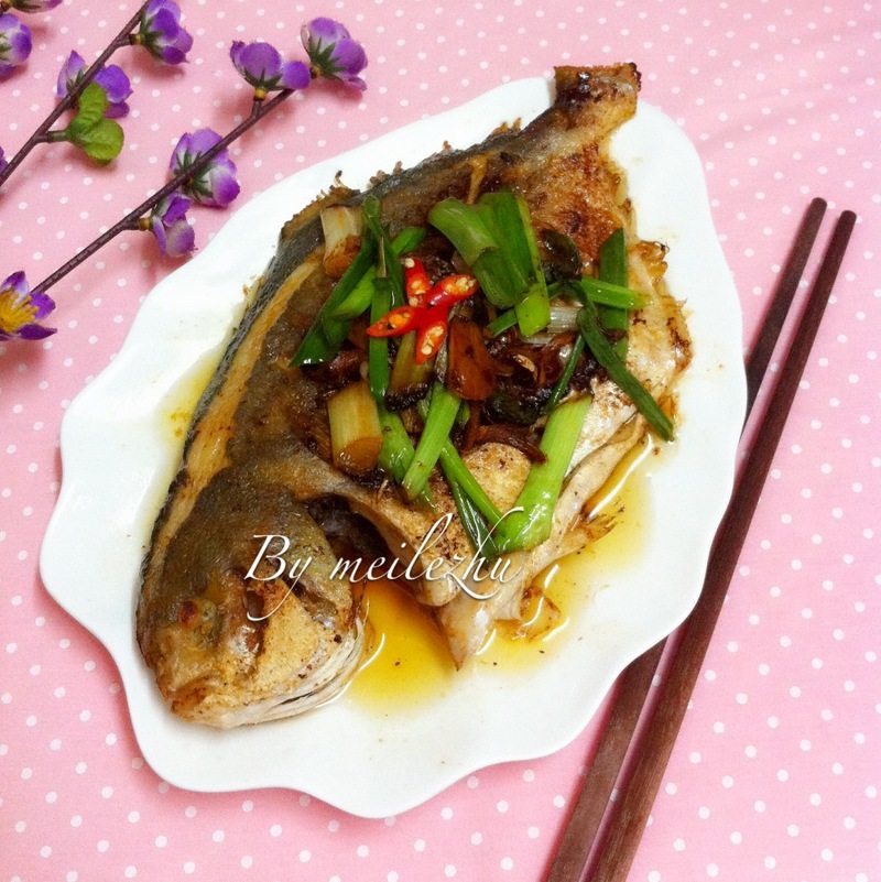 金鲳鱼1条;干辣椒适量;葱适量;姜适量;