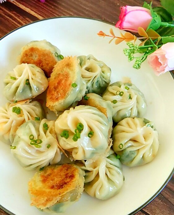 9:直到水分吸收干这时包子也熟了撒上葱花