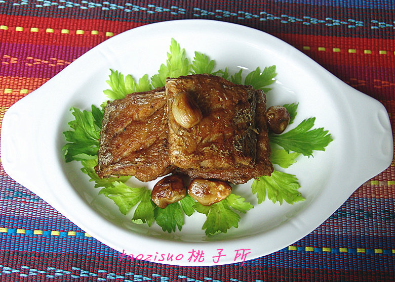 2:平锅内放入食用油将蒜瓣煸至金黄色捞出备用;