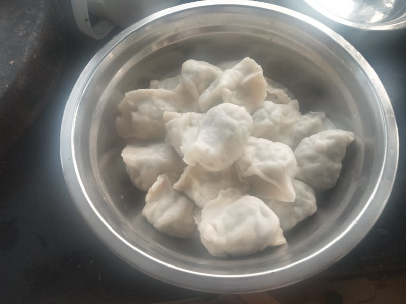 5:下锅煮一分半钟后看到饺子浮起来了,再淋入一次凉水,再次开锅就可以捞出饺子装盘。