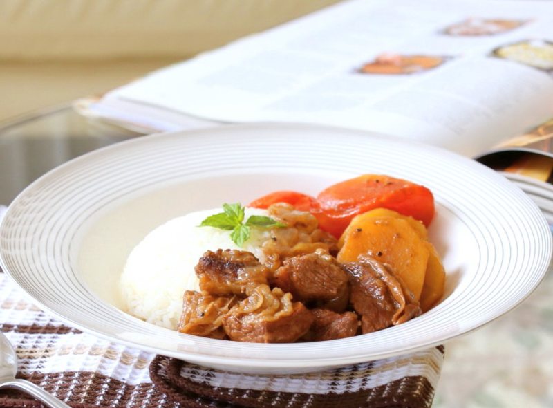9:我喜欢煮好的土豆和西红柿都是软而不烂,蔬菜,肉和汁很分明。用红酒味的黑椒洋葱汁拌饭也很不错!