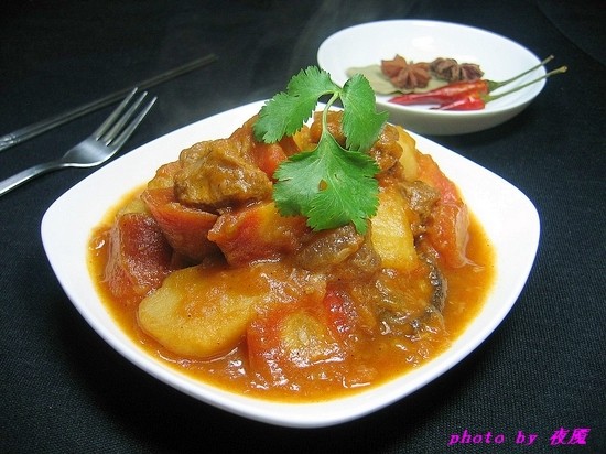 牛腩适量;洋葱适量;土豆适量;西红柿适量;