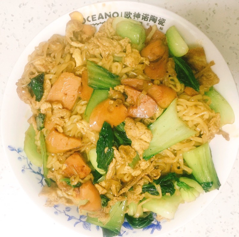 2:青菜滚开后下耗油,酱油,盐等配料最后干面或粉条。