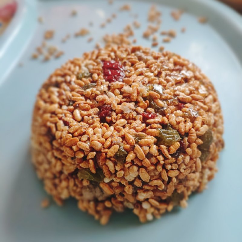 7:倒入大米,葡萄干,核桃,红枣,迅速搅拌均匀。