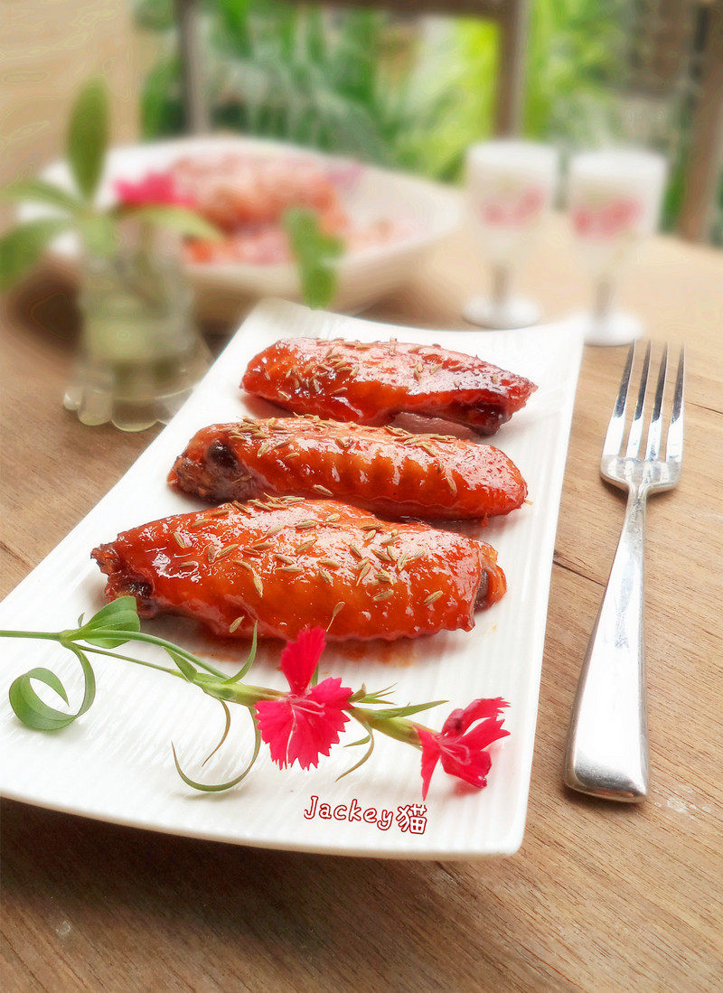 在腌制前要在翅中的正反面划几道口子好入味。在烤制的过程中,隔几分钟取出来正反面刷一层蜂蜜。