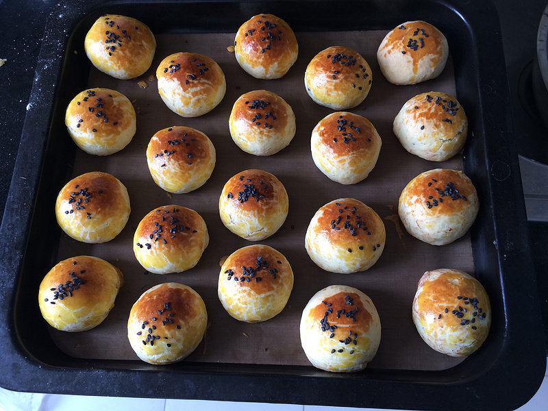 12:最后在每个头上撒少许芝麻装饰。中层,上下火,180度20-25分钟。
