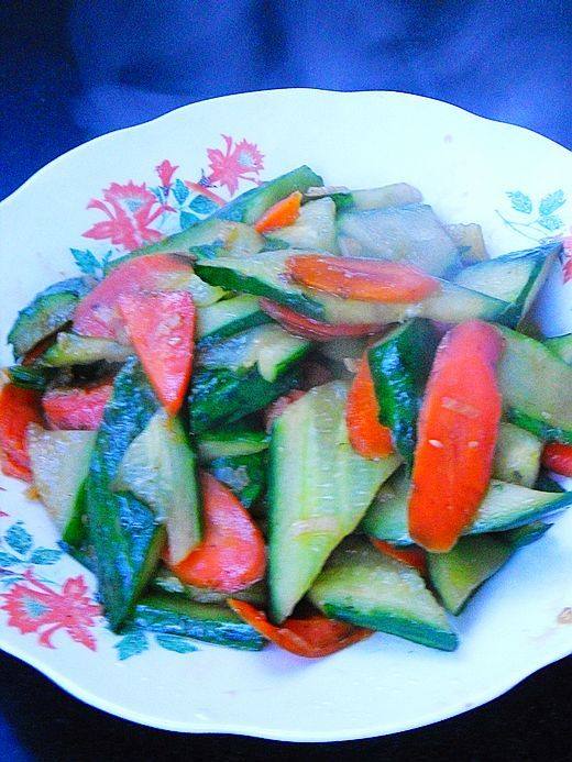 5:放入黄瓜片。快速翻炒均匀,使黄瓜片断生。