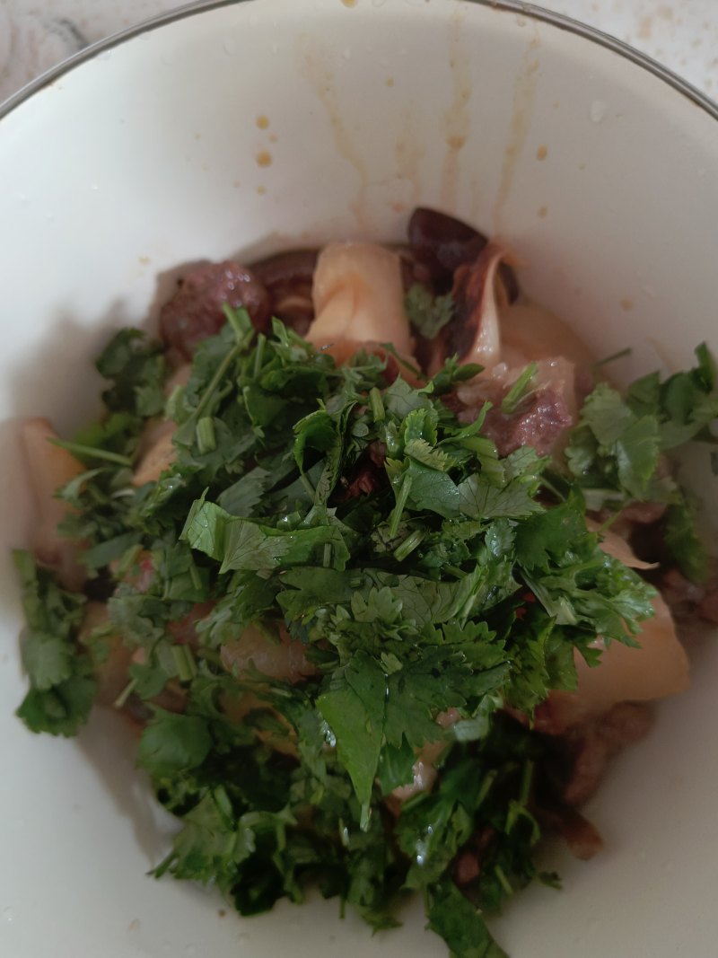 6:起锅放入香菜段即可。