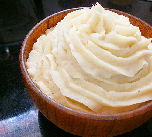 8:将淡奶油和细砂糖搅拌进土豆泥里。
