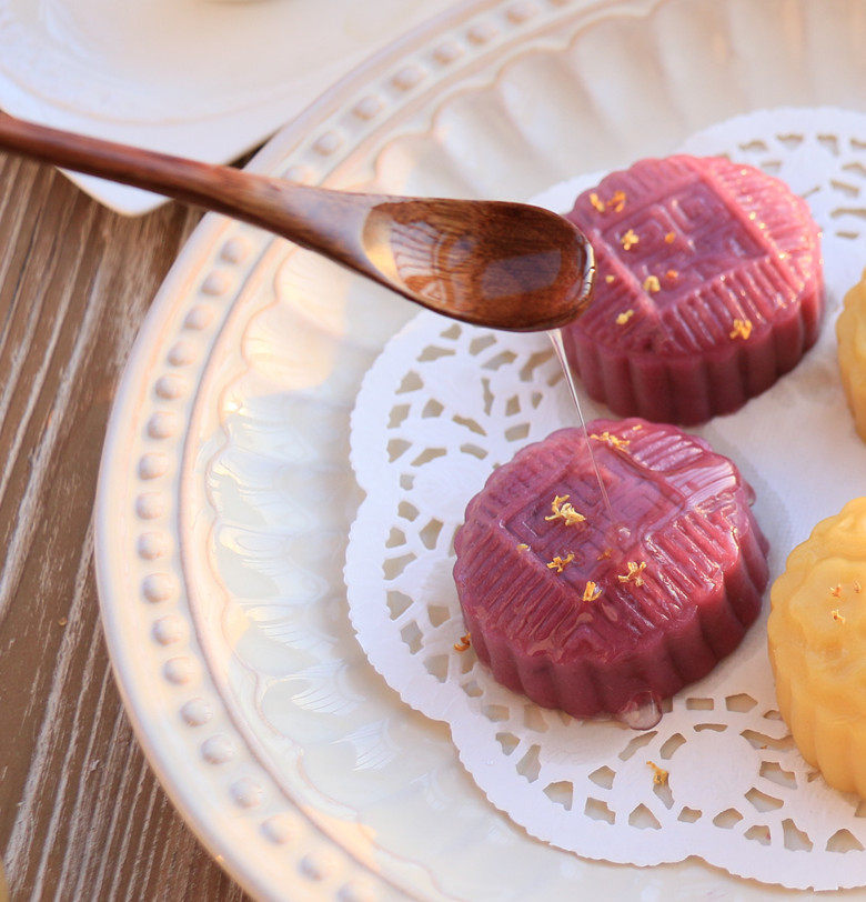 14:在月饼模具里刷少许植物油防止粘连,然后放入月饼模具做出形状即可。