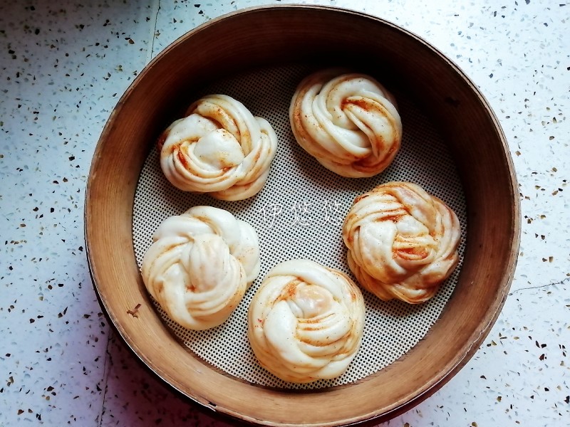 怎么判断二发已经发酵到位呢?可以拿起花卷,掂着很轻盈就是发好了。