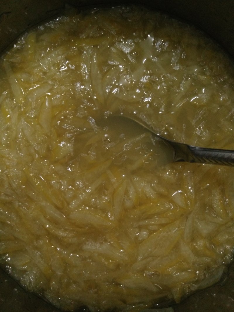 7:慢火煮...把糖和冰糖煮化就好了...煮的过程一定要不停搅拌..以免粘锅