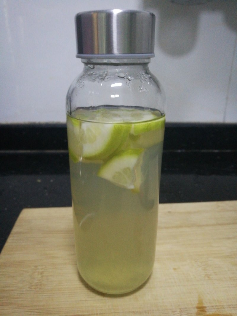 我这里杯口比较小,所以柠檬切小了。水必须是要刚刚烧开放至了一会儿的。