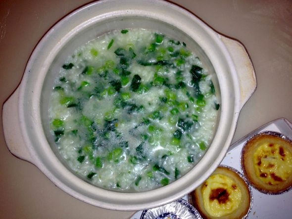 5:排骨熟了后放入青菜,最后关火,青菜排骨粥完成。