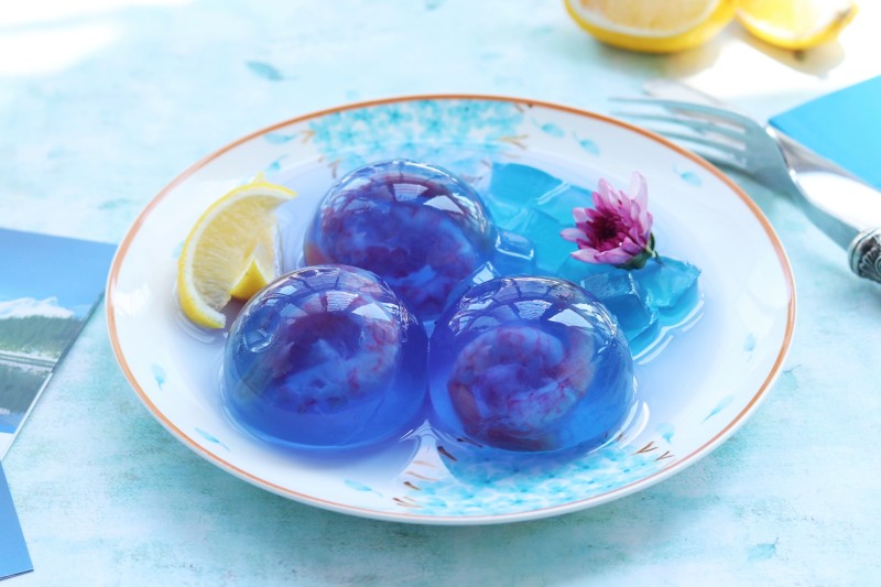 8:脱模,因为尝试了两次,第二次蝶豆花泡的久一些,颜色更深。