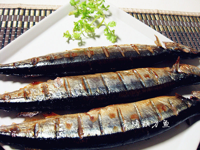 5:在烤好的秋刀鱼上洒几滴柠檬汁即可。