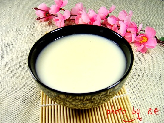 4:豆浆机工作完成后,倒出,加少量红糖拌匀,配上些小点心,不错哦!