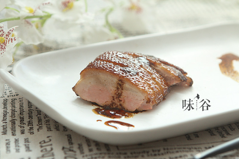 6:拿出来刷上刚才腌鸭肉的酱汁,刷上一层蜜糖,晾干后进烤炉170°60分钟。
