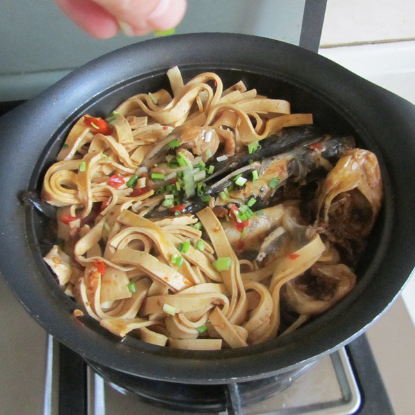 8:煮开之后放入千张煮5分钟,尝咸淡加入适量的盐。
