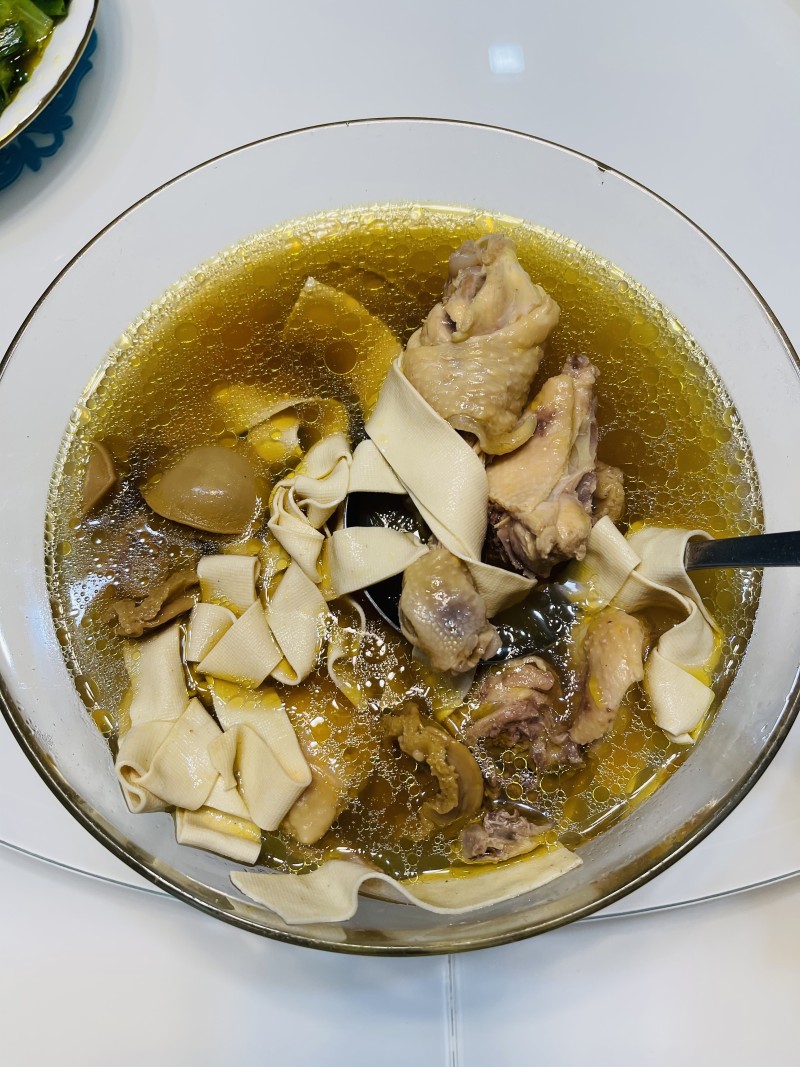 5:加适量清水水开下豆皮,中火慢炖一会。