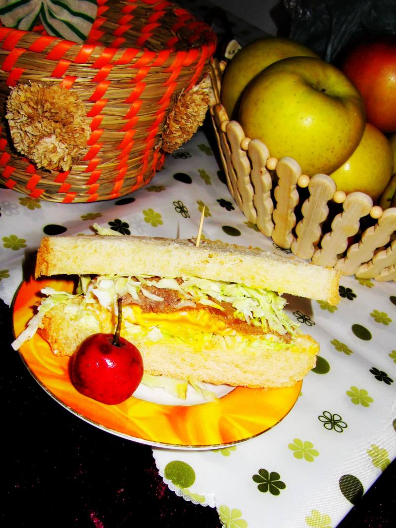 面包片2片;大头菜50g;牛肉50g;鸡蛋2个;
