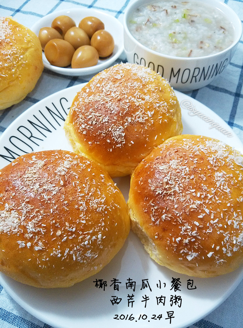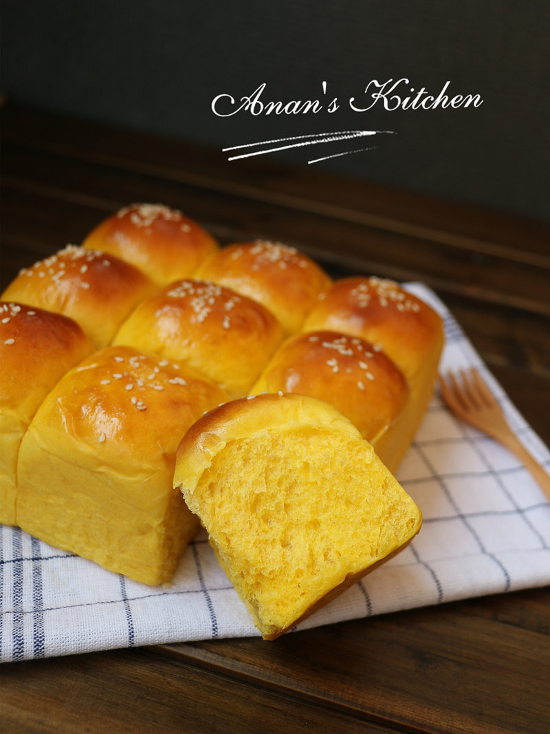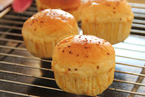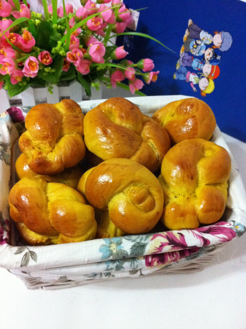 高筋面粉280克;南瓜泥160克;鸡蛋1颗;盐3克;糖30克;酵母5克;黄油30克;