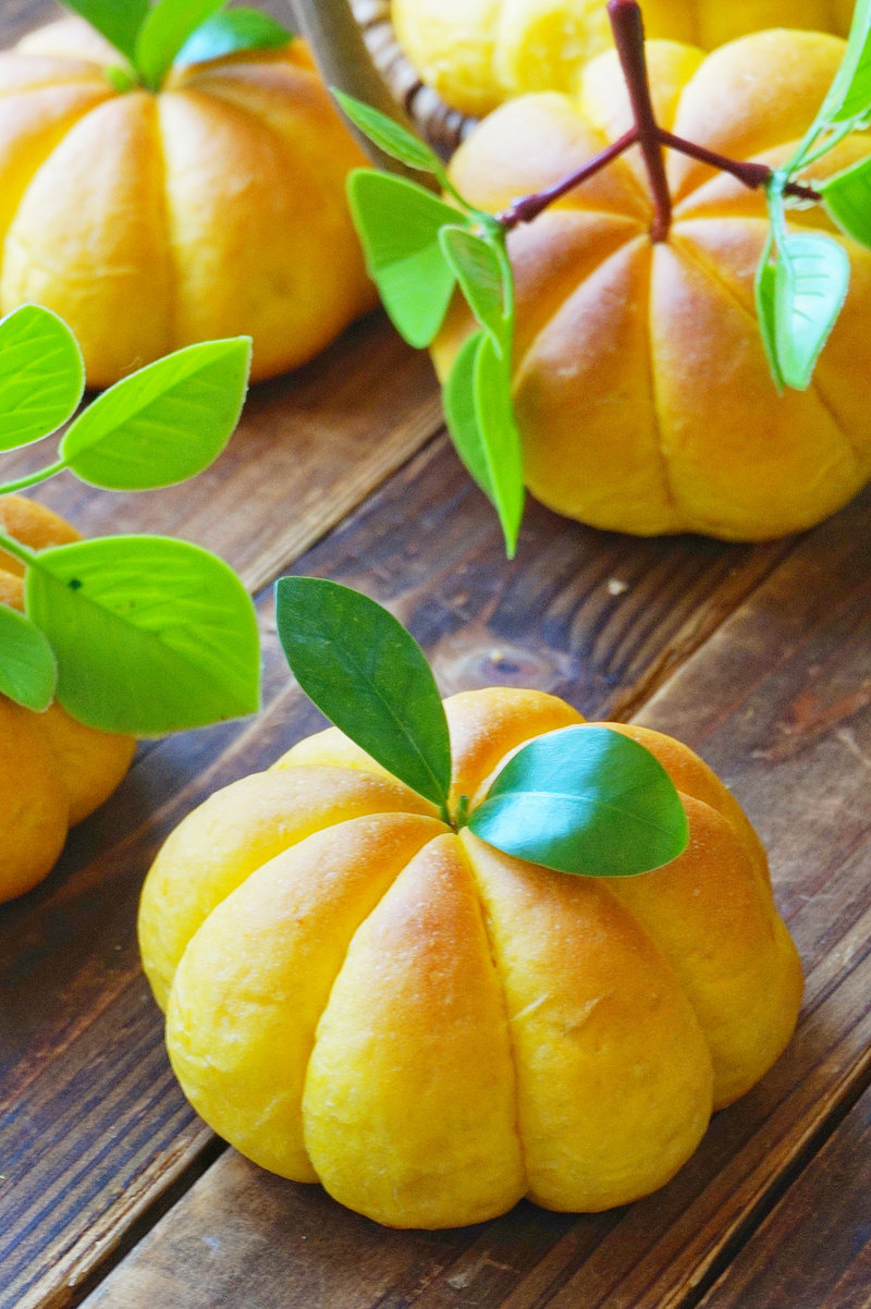 8:弄点薄荷叶插上,装饰一下。好看又好吃的南瓜包做好了
