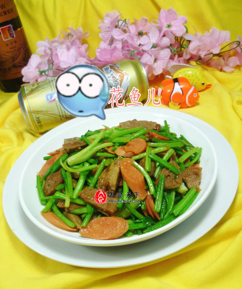 芹菜230克;牛筋丸100克;火腿肠2根;