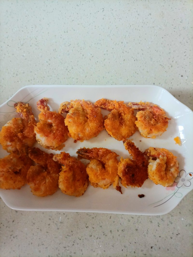 5:裹好面包糠的虾。