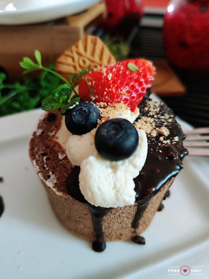 34:放上饼干和草莓、蓝莓装饰一下。